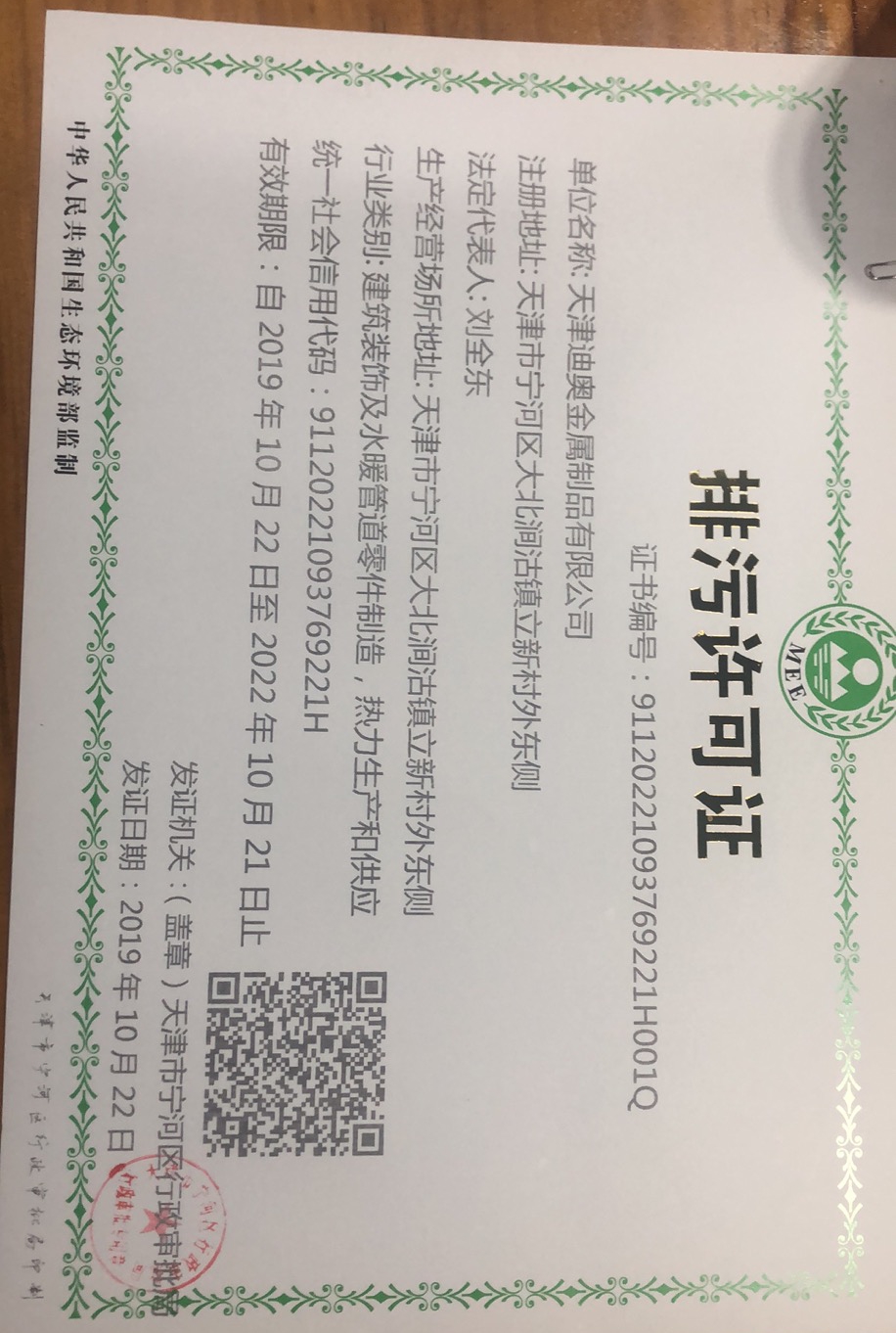 天津迪奧金屬制品有限公司(珍萬(wàn)仕達(dá)散熱器)專業(yè)生產(chǎn)鋼制、銅鋁復(fù)合散熱器。在國(guó)家的嚴(yán)審下順利通過審核在2019年10月22日下證書排污許可證。企業(yè)環(huán)保手續(xù)齊全,歡迎新老客戶下單.........